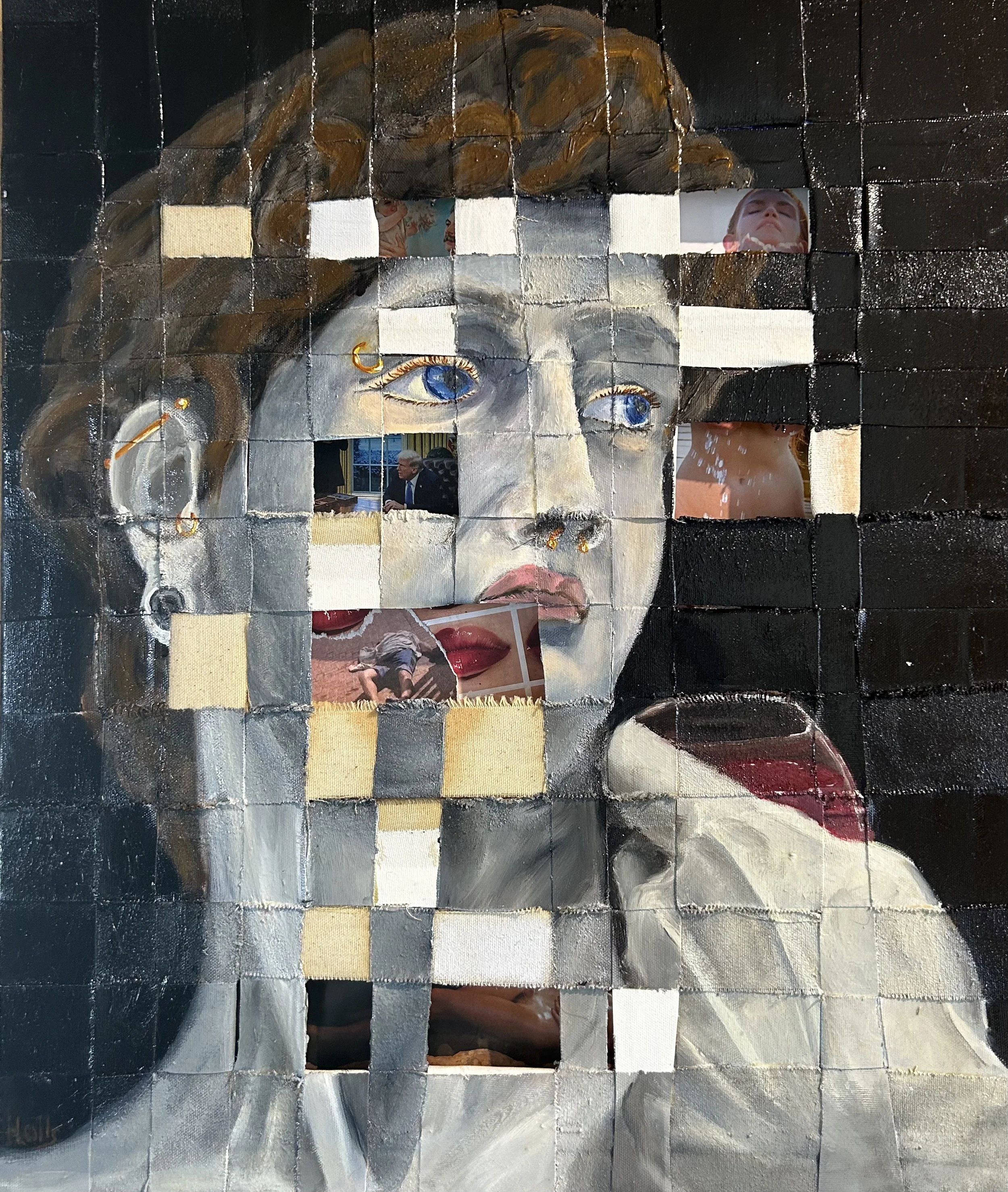 Huile sur bandes de toile - collage